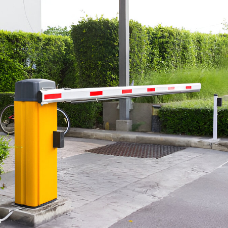 A barrier gate is a type of mechanical or electronic gate that controls vehicle access by raising or lowering a barrier arm to allow or restrict entry to a particular area.
